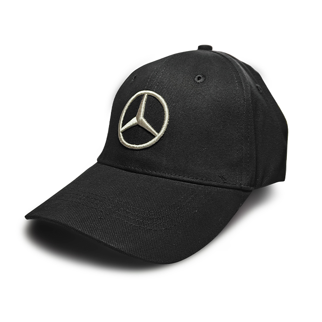 Dale estilo a tu outfit con este jockey negro y plata con diseño exclusivo Mercedes-Benz. Fabricado en tela resistente y ligera, combina comodidad con un look moderno y sofisticado.